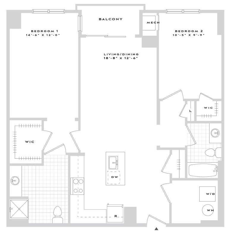 Apartment Model: B2-A08From $2,1841 Bedroom, 1 Bath, 779 sq ftAvailable Now![]()