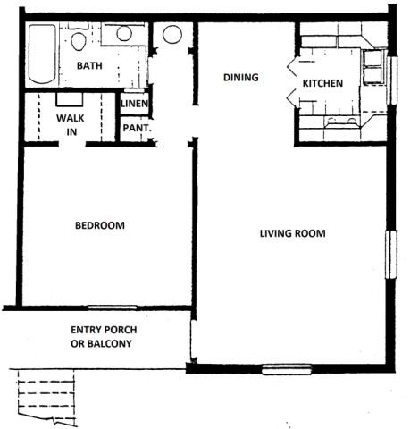1 Bedroom, 1 Bath - Floorplan 1 2 Bedrooms