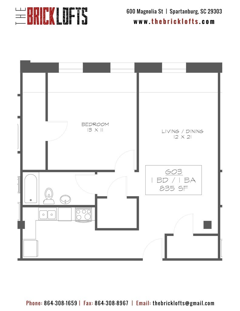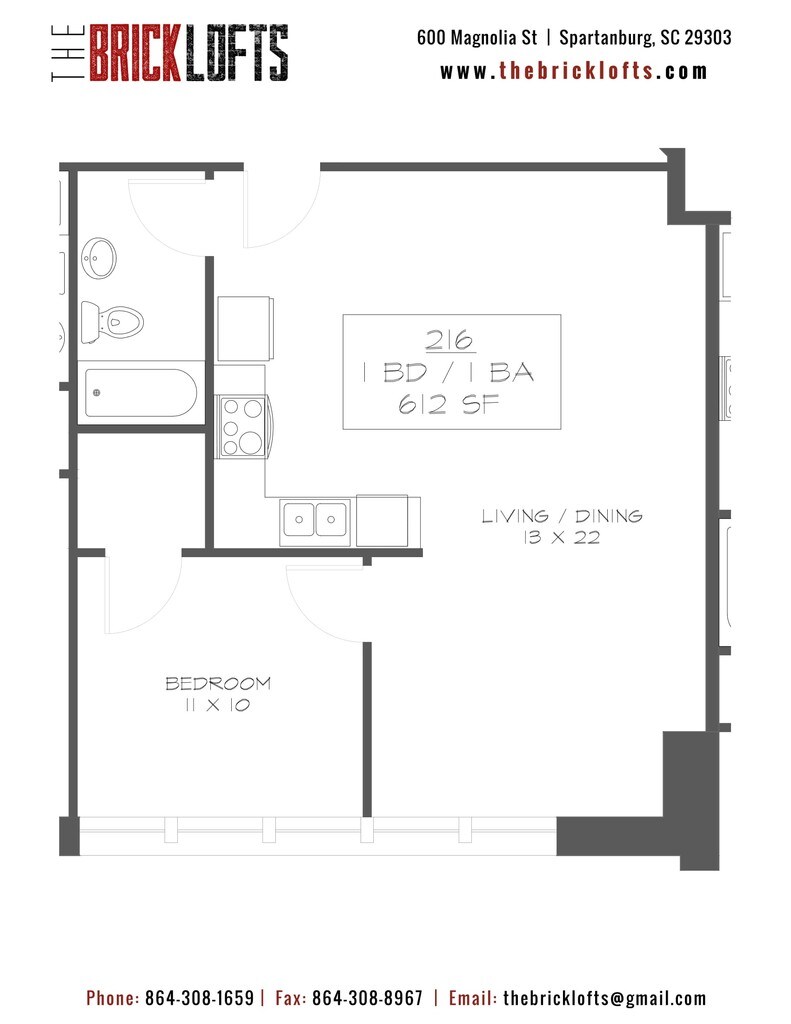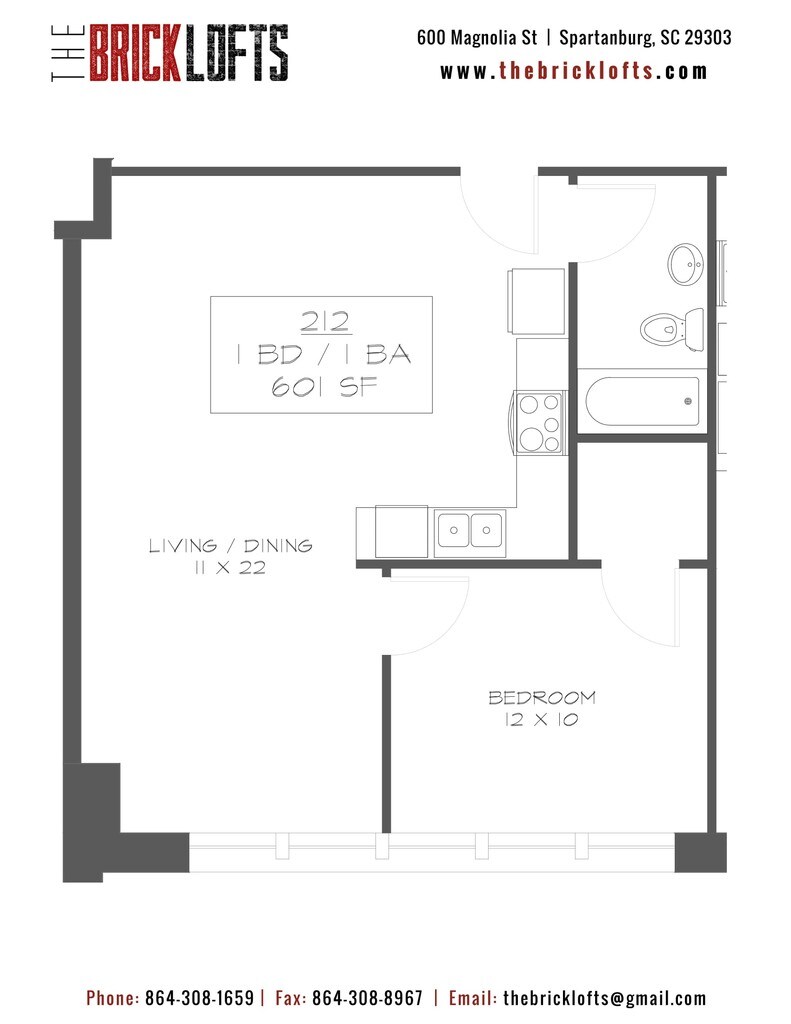 The Brick Lofts - Newly renovated building in Downtown Spartanburg. These spacious apartments have high ceilings, lots of storage space, large windows, and loads of charm. Conveniently located within a few hundred yards of VCOM, Spartanburg Regional Hospital, and Wofford College. Contact us to schedule a viewing soon!