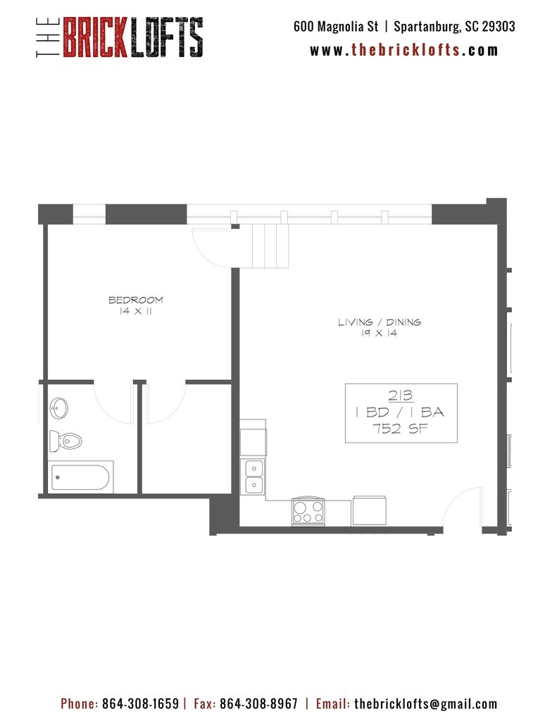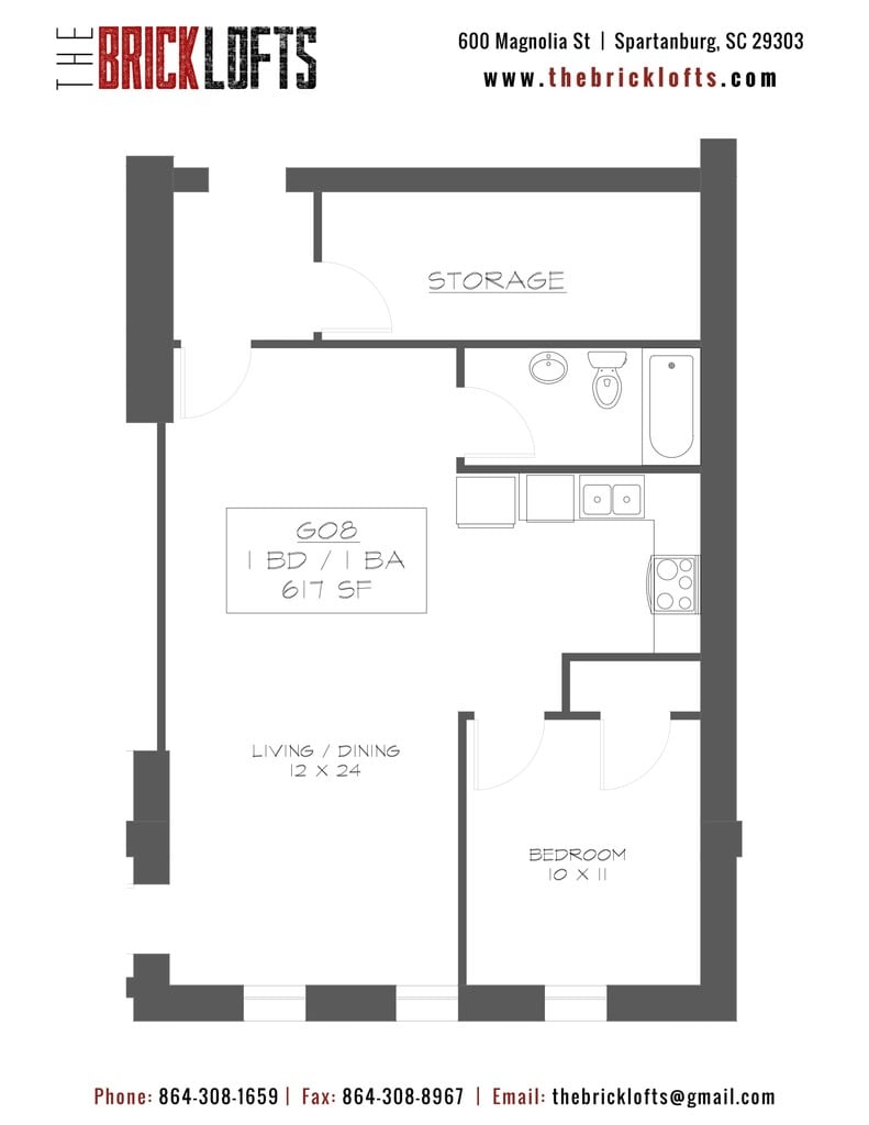 The Brick Lofts is located at 600 Magnolia St near the Cleveland Park area of Spartanburg, SC
