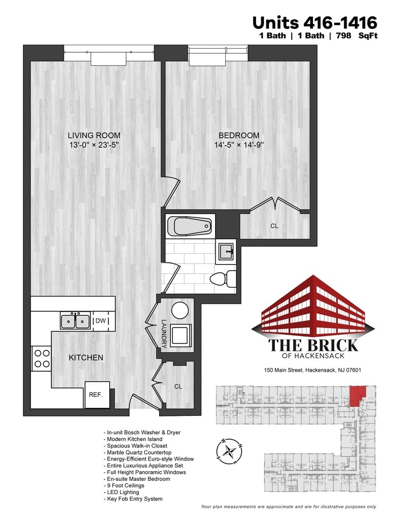 Live in the lap of luxury at The Brick of Hackensack Apartments and indulge in stunning skyline views and high-class amenities. Inspired by Manhattan's vibrant scene, these Hackensack apartments impress through contemporary features, sleek finishes, and a unique selection of studio, one, and two-bedroom layouts. The significance of our building's name and fa?ade originates in the last decade of the 19th century when ten brickyards operated along the Hackensack River. Much of the clay used in manufacturing was harvested here in Hackensack. The excellent location gives you exclusive access to Downtown Hackensack, New York, and Newark. Your elevated lifestyle starts in our high-rise recreation spaces. Plunge in the sparkling rooftop pool, sit on the sundeck, then take your pet out to the dog park overlooking the city. The sky lounge is equally impressive and includes a billiards table where you can unwind with a friendly game. When you have to focus on professional projects, head to the community room and let the creativity flow. These apartments in Hackensack, NJ, also provide plenty of places to stay active such as a state-of-the-art fitness center and yoga studio to tone your body and mind.Inside our luxury apartments in Hackensack, NJ, style and comfort intertwine for your utmost satisfaction. The full-height panoramic windows allow natural light to pour inside each room, while the open-concept design connects them through soaring 9-foot ceilings. The kitchens turn cooking into a delightful experience with elegant details like marble quartz countertops, deluxe appliances, and trendy hardware fixtures. The bedroom and bath feature sleek designs, modern colors, and soothing lighting.Our location makes it easy to get out and explore the city. A short ride can take you to top destinations such as Fairleigh Dickinson University, Hackensack Hospital, and The Shops at Riverside. Thanks to our convenient location near I-80 and I-95, visiting the Empire State is a breeze when Manhattan is just a 20-minute drive away.Schedule a tour today and see what makes The Brick the best place to start fresh!