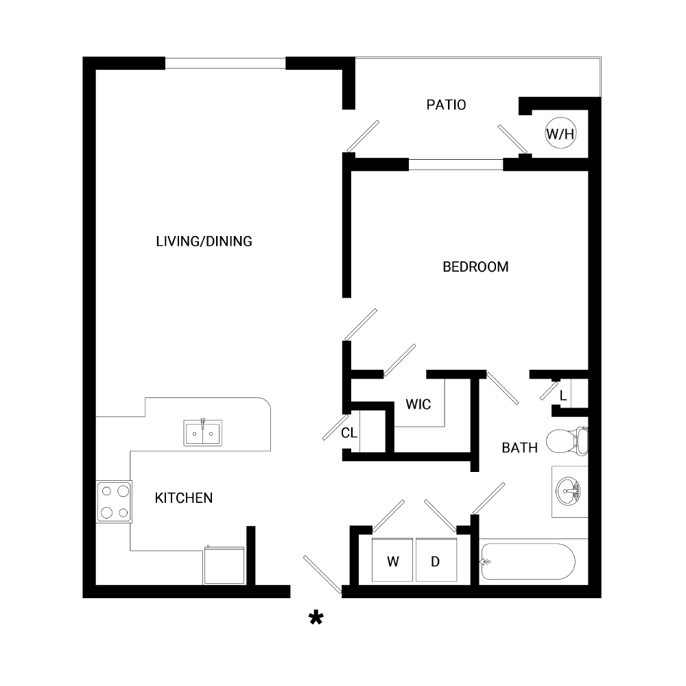 Studio, 1 Bath, 626 sq ftAvailable NowModel Gallery