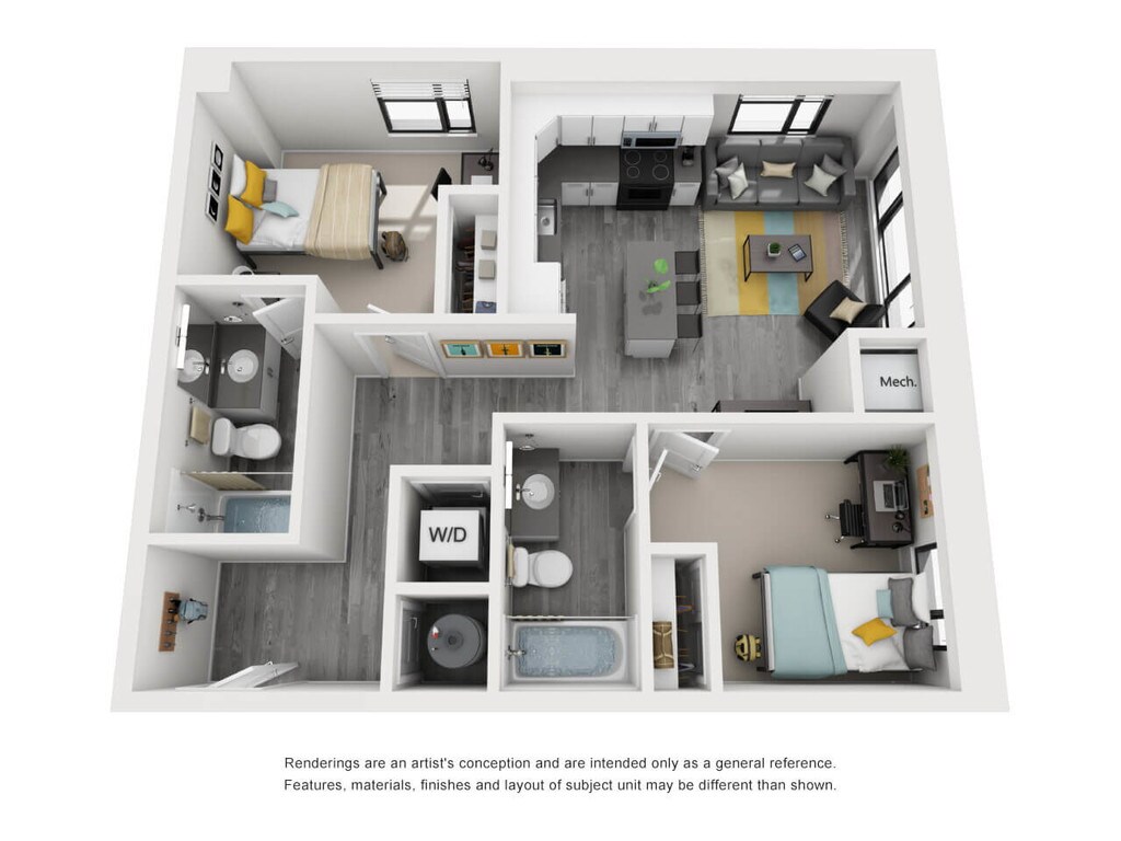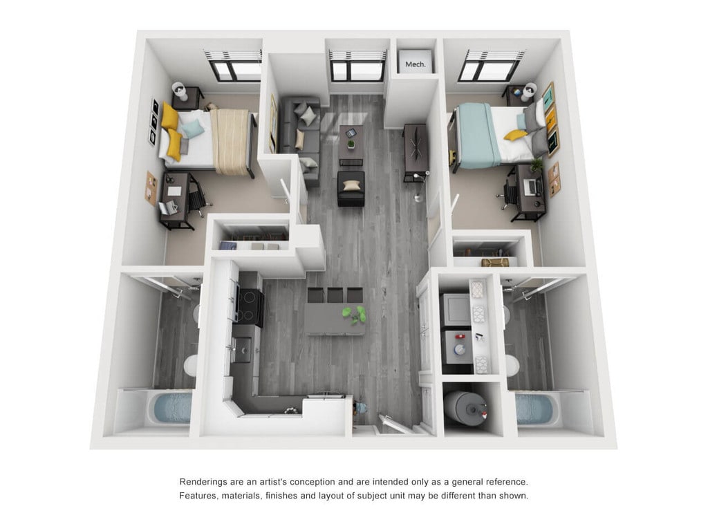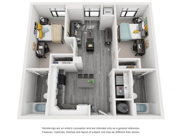2 Beds, 2 Baths, 750 sq ftAvailable August 15, 2026Model Gallery