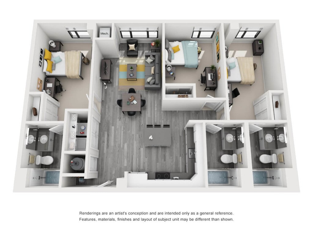 3 Beds, 3 Baths, 1067 sq ftAvailable August 15, 2026Model Gallery
