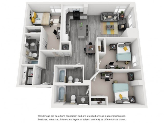 Apartment Model: C1 - A - Standard3 Bedroom, 3 Bath, 1067 sq ftAvailable August 15, 2026![]()