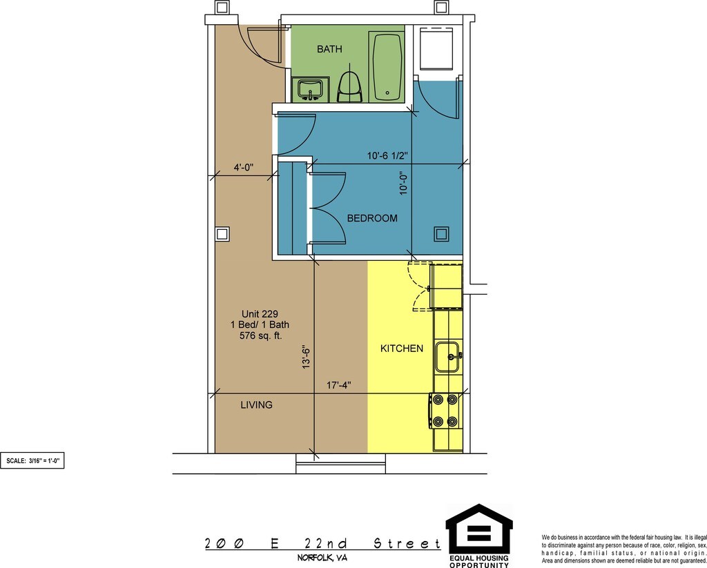 Apartment Model: The Brightleaf Building 2291 Bedroom, 1 Bath, 576 sq ftUnavailableThe Brightleaf Building 229 - Floorplan 1 The Brightleaf Building 129