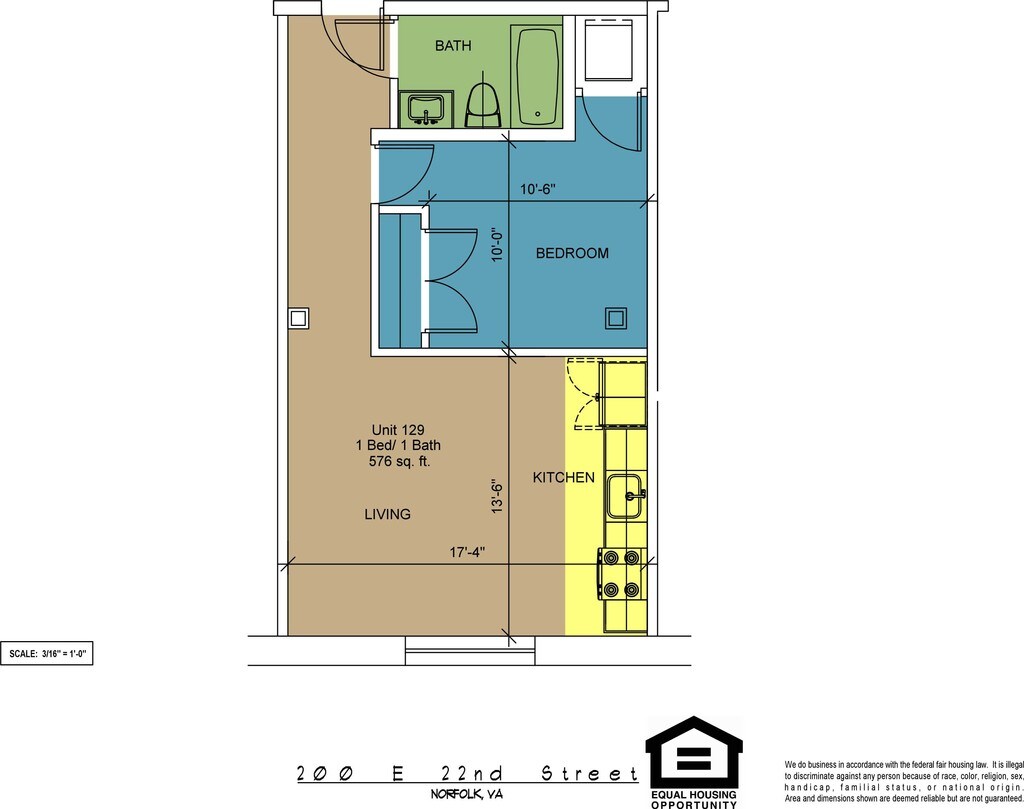 Apartment Model: The Brightleaf Building 1291 Bedroom, 1 Bath, 576 sq ftUnavailableThe Brightleaf Building 129 - Floorplan 1 The Brightleaf Building 329