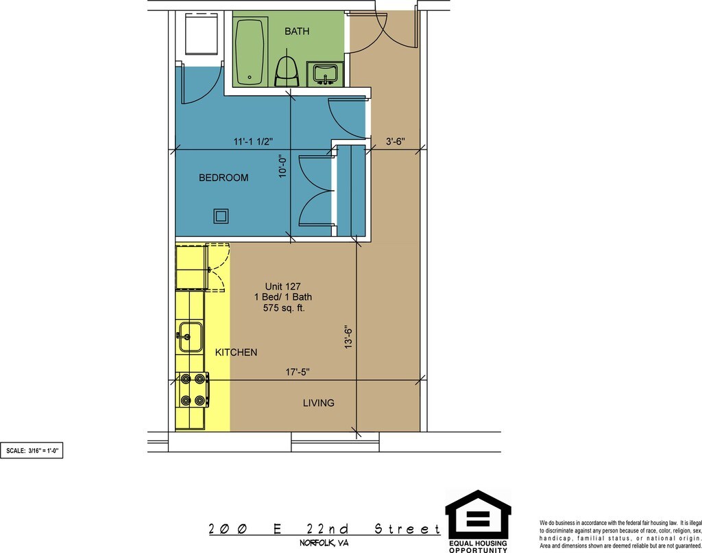 Apartment Model: The Brightleaf Building 1271 Bedroom, 1 Bath, 575 sq ftUnavailableThe Brightleaf Building 127 - Floorplan 1 The Brightleaf Building 227