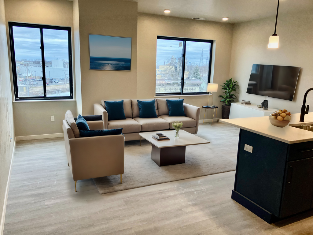 From a mid-century theatre house to upscale living! The Brin Theatre opened on December 25, 1928 and closed its doors in 1969, last operated by Marcus Theatres. Severely damaged by a fire on August 10, 2018, the location now gains a new lease on life with the lot redeveloped into a newly-constructed apartment complex. Located in downtown Menasha, the Brin’s modern floor plans offer spacious one- and two-bedroom apartments. Each unit features an open-concept kitchen and living room area with modern finishes, a large kitchen island with quartz countertops, spacious closets, central heat and air, and energy-efficient appliances, including a washer and dryer. If you’re looking for a central downtown Menasha location, you’ve found it at The Brin. Close to restaurants, shops and bars without the noise — The Brin is your opportunity to live with a quiet backdrop riverscape.