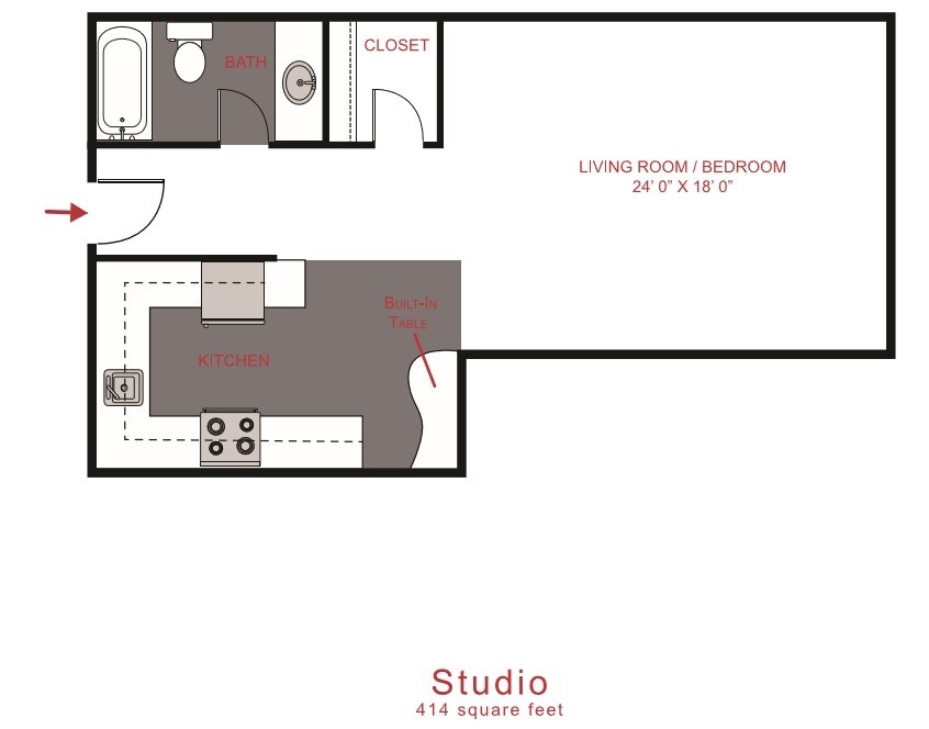 Apartment Model: StudioStudio, 1 Bath, 414 sq ftUnavailable![]()