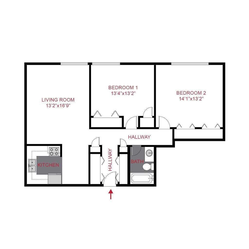 2 Bedroom 1 Bath - Floorplan 1