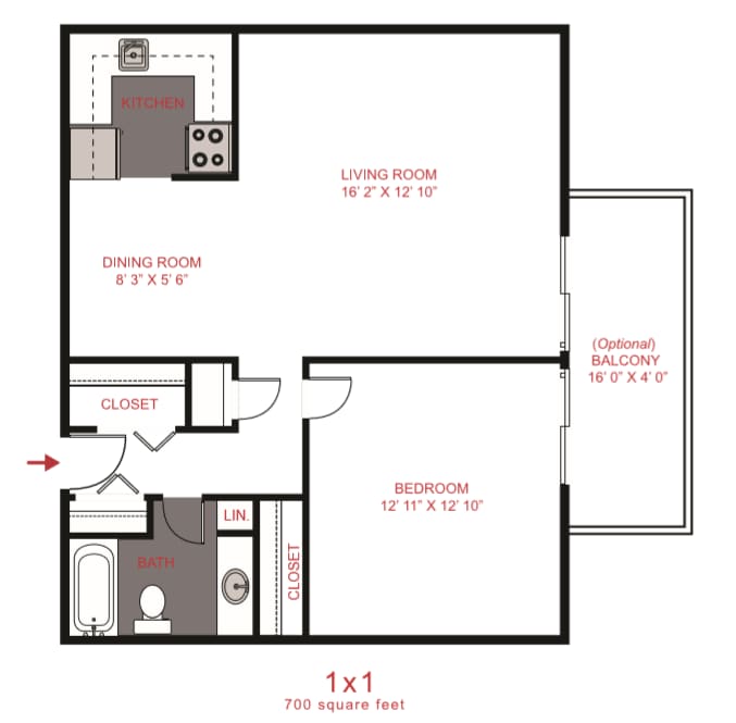 Apartment Model: One Bedroom One Bath1 Bedroom, 1 Bath, 700 sq ftAvailable NowFloorplansPhotos![]()