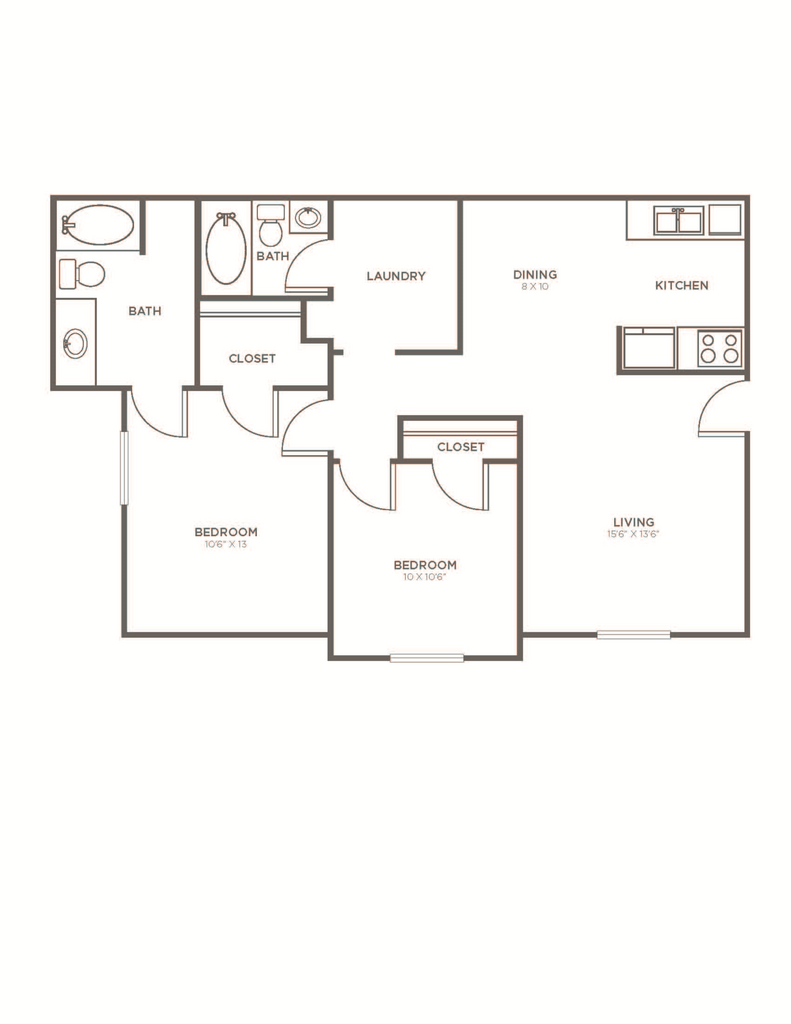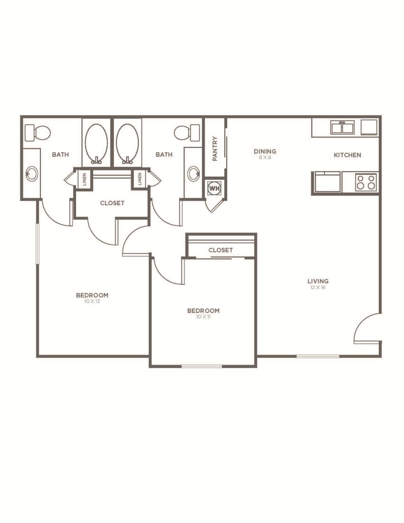 2 Beds, 2 Baths, 900 sq ftLargest 2 BedroomThis is the largest 2 Bedroom at this PropertyModel Gallery