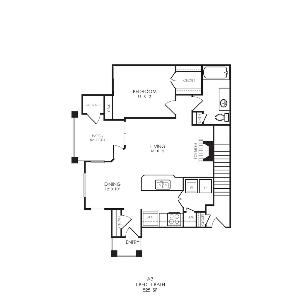 Apartment Model: A3From $1,5391 Bedroom, 1 Bath, 825 sq ftAvailable May 7, 2026FloorplansPhotos![]()