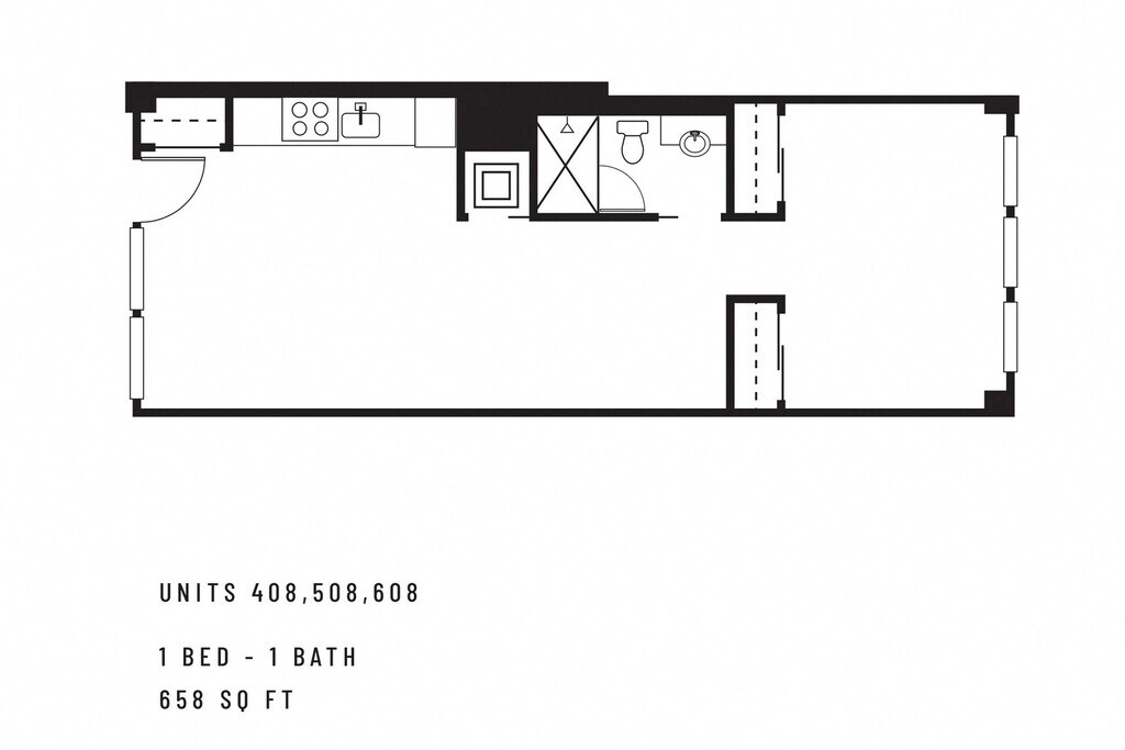 Studio D - Floorplan Apartment Unit: 511Apartment Model: Studio D$1,729Studio, 1 Bath, 607 sq ftAvailable Now![]()