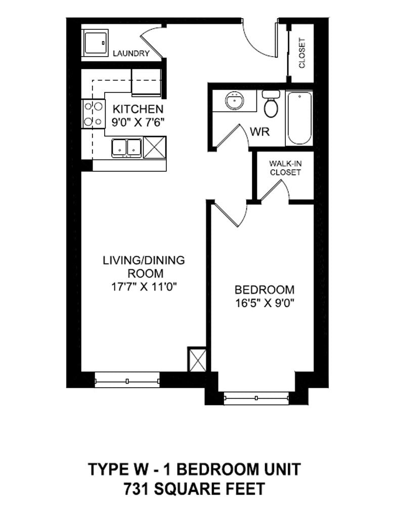 The Brock offers 1 Bedroom apartments starting from $1,995 and having 551 sq ft. Here is the current pricing and availability: