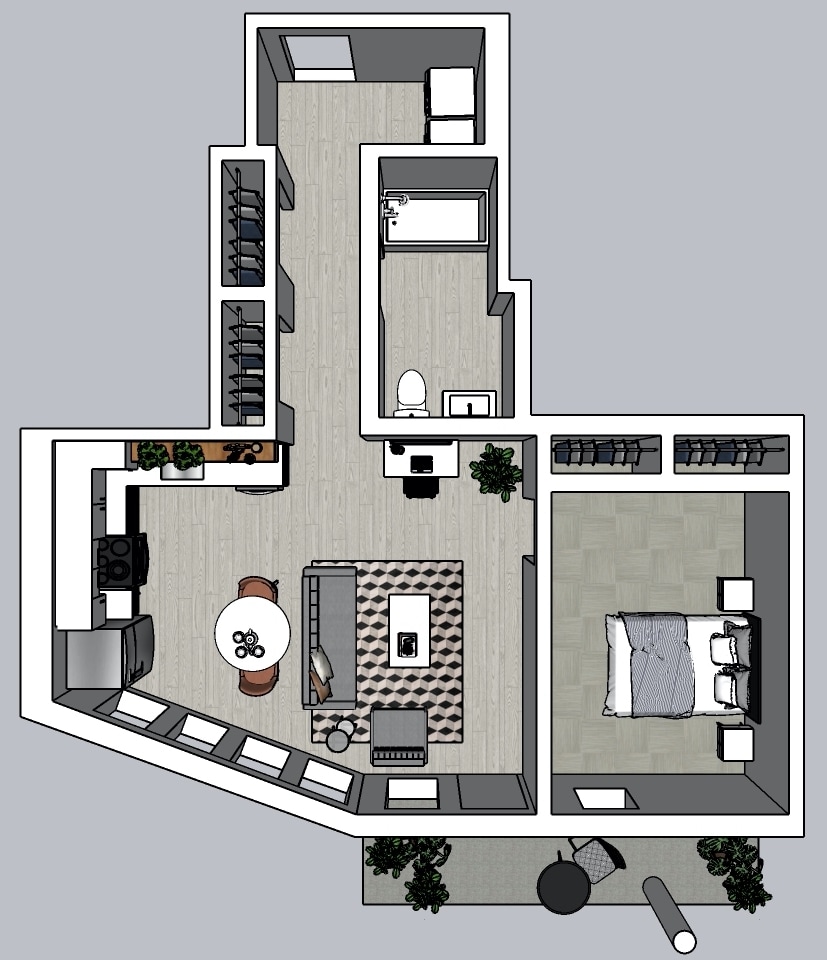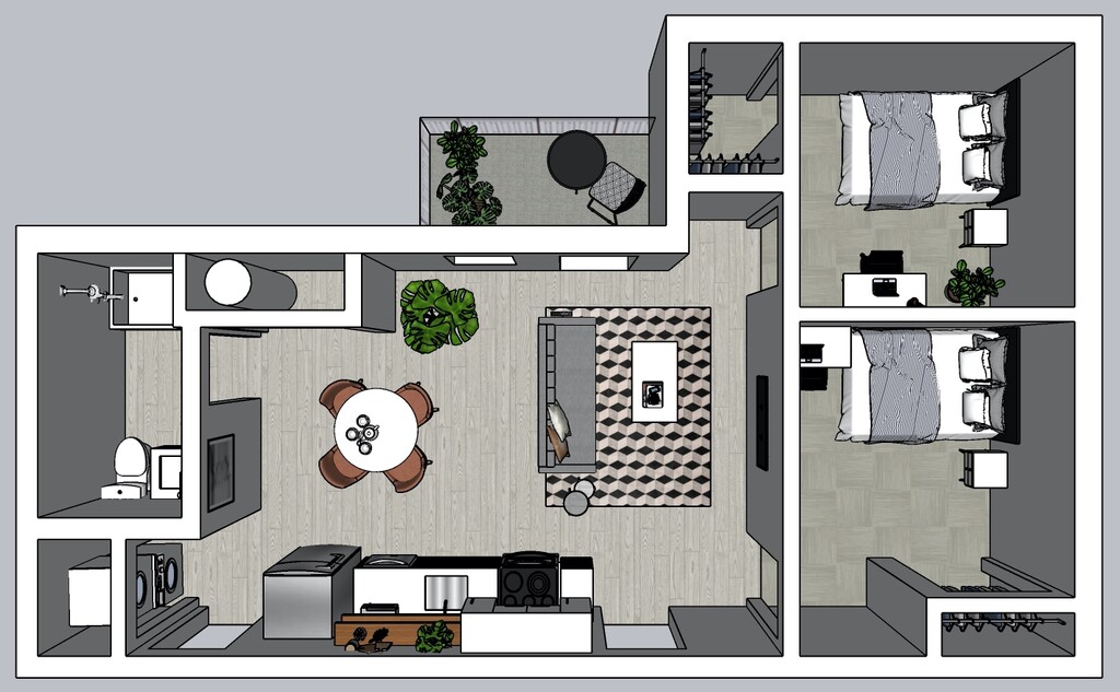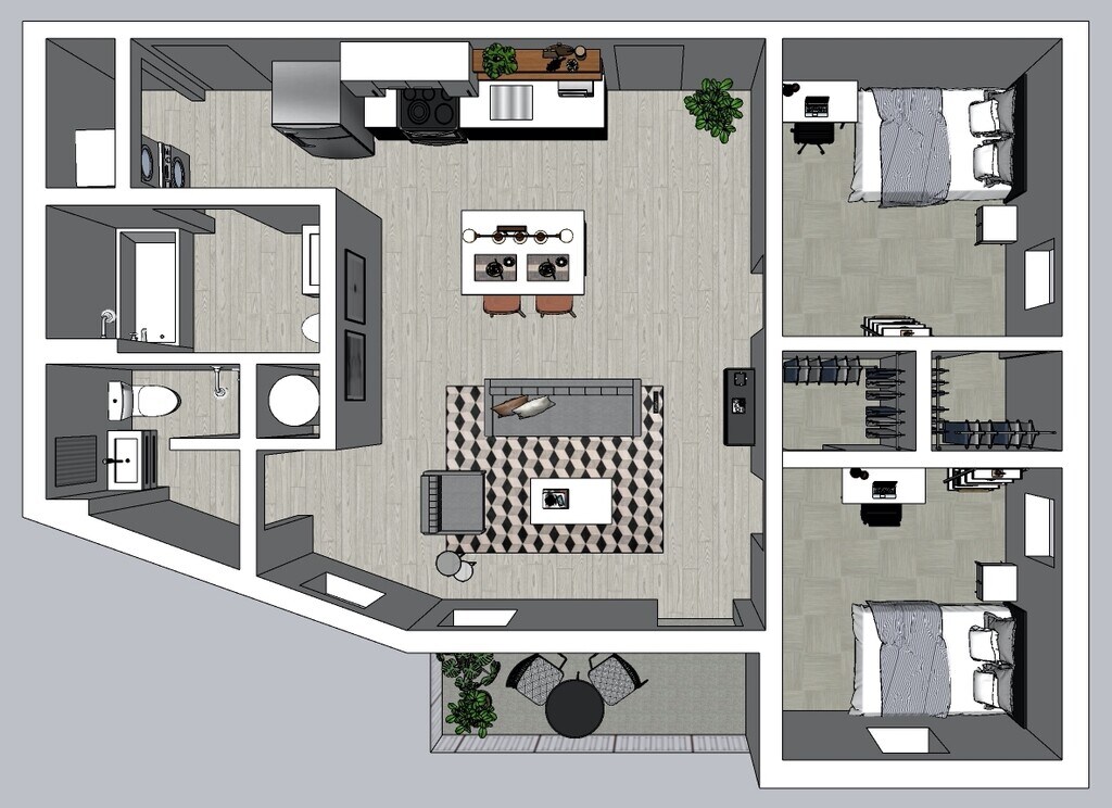 2 Bed 1 Bath - Floorplan 10 Apartment Unit: 402Apartment Model: 2 Bed 1 Bath$3,4502 Bedroom, 1 Bath, 781 sq ftAvailable August 14, 2026