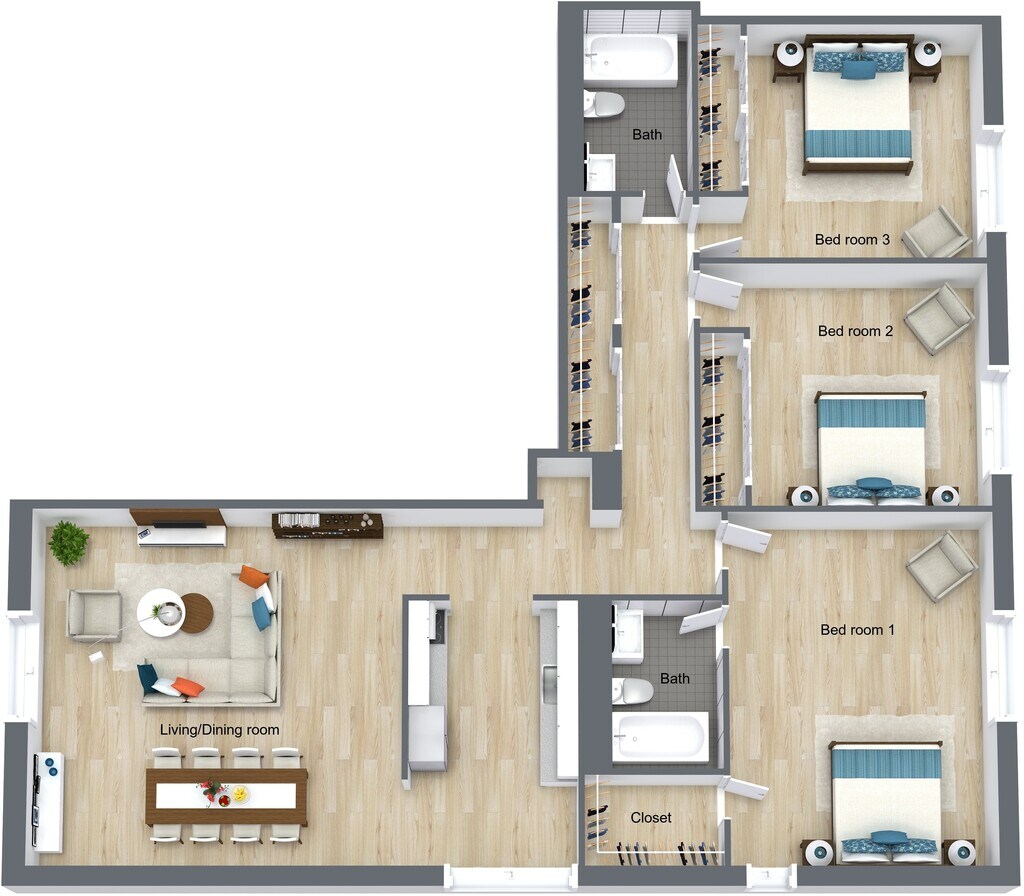 Availability Date Unit Sq Ft Unavailable 2 BR 860 sq ft 3 Bedrooms