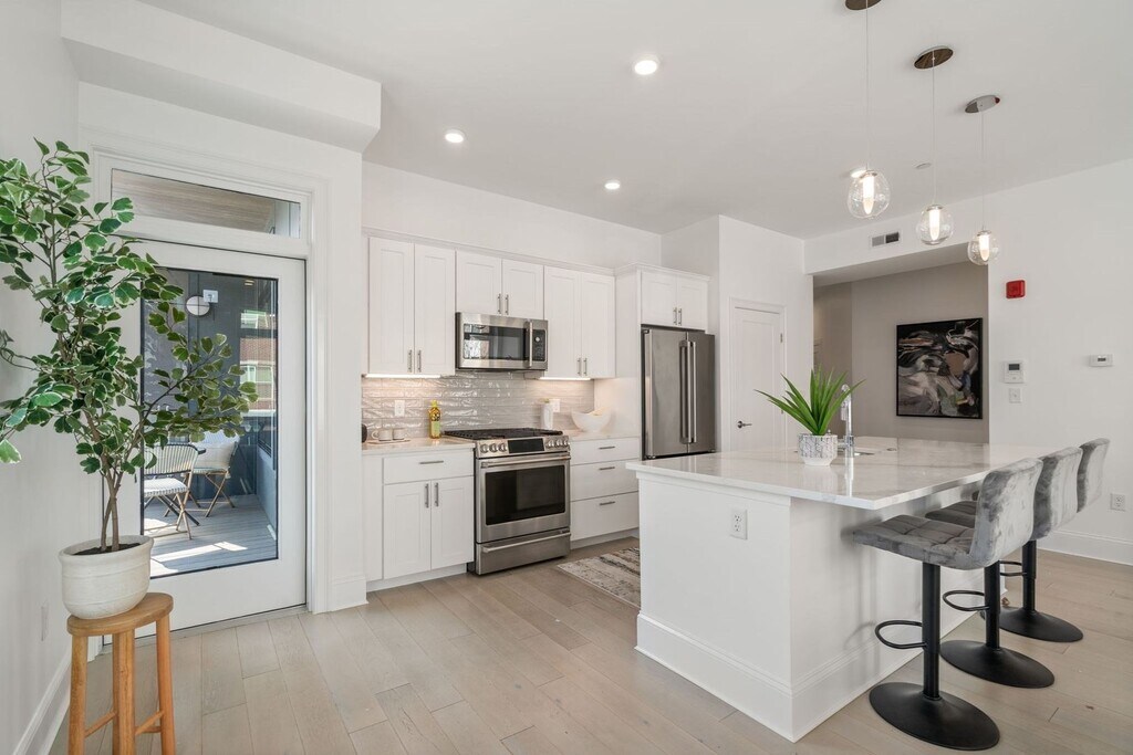 One Month Free For Select Units With All 9/1 Leases! Welcome to The Brook! This thoughtfully designed elevator building offers modern rental apartments that seamlessly combine convenience and sophistication. Situated in the dynamic industrial neighborhood of North Cambridge, residents enjoy prime access to transportation, dining, shopping, and entertainment. These stylish, open-concept residences feature expansive windows, soaring 9.5-foot ceilings, high-end GE Café appliances, and sleek quartz countertops. Community amenities include ample bike storage, a spacious rooftop deck with a stainless steel grill and gas fire pit, and easy access to Fresh Pond. Garage parking available for rent. Photos are of sample unit.