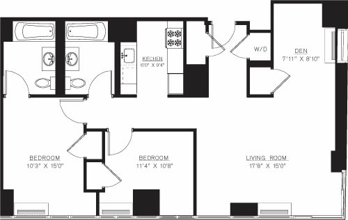 Apartment Model: 1 Bedroom K Line floors 8-41From $3,9121 Bedroom, 1 Bath, 618 sq ftAvailable Now![]()