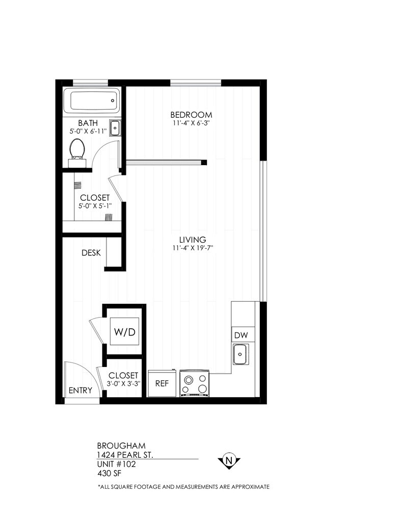 Studio - Floorplan 5 Apartment Unit: 210Apartment Model: StudioStudio, 1 Bath, 425 sq ftAvailable Now![]()