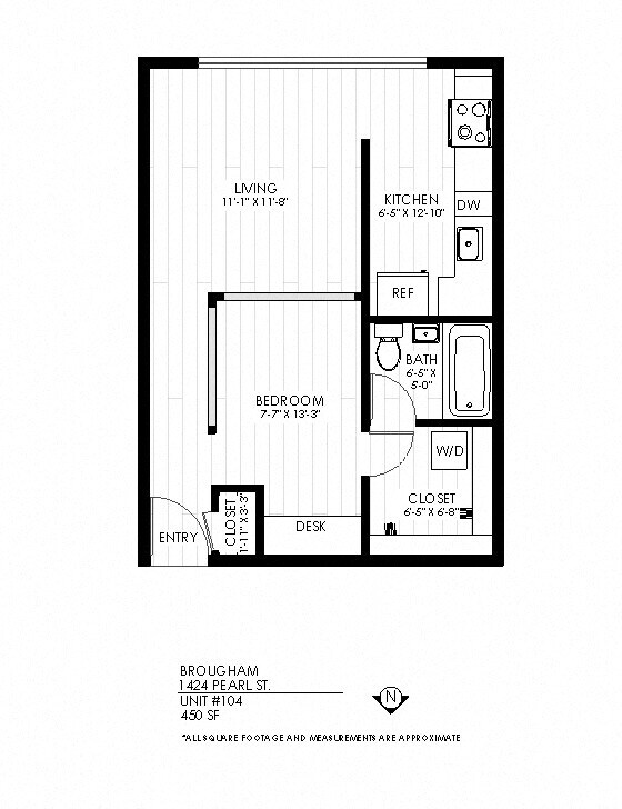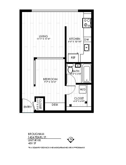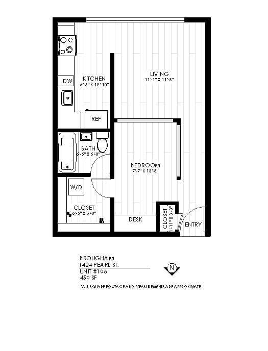 1 Bedroom - Floorplan 6 Apartment Unit: 106Apartment Model: 1 Bedroom1 Bedroom, 1 Bath, 450 sq ftAvailable Now![]()