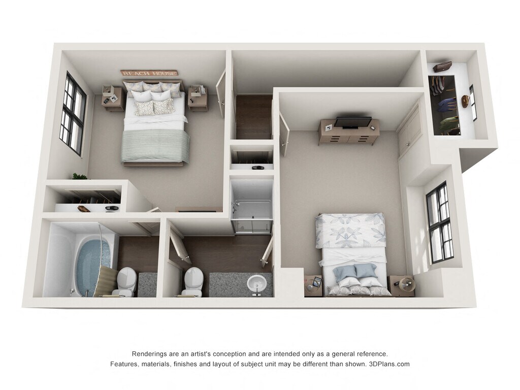 2 Beds, 2.5 Baths, 1329 sq ftAvailable January 23, 2026Largest 2 BedroomThis is the largest 2 Bedroom at this PropertyModel Gallery