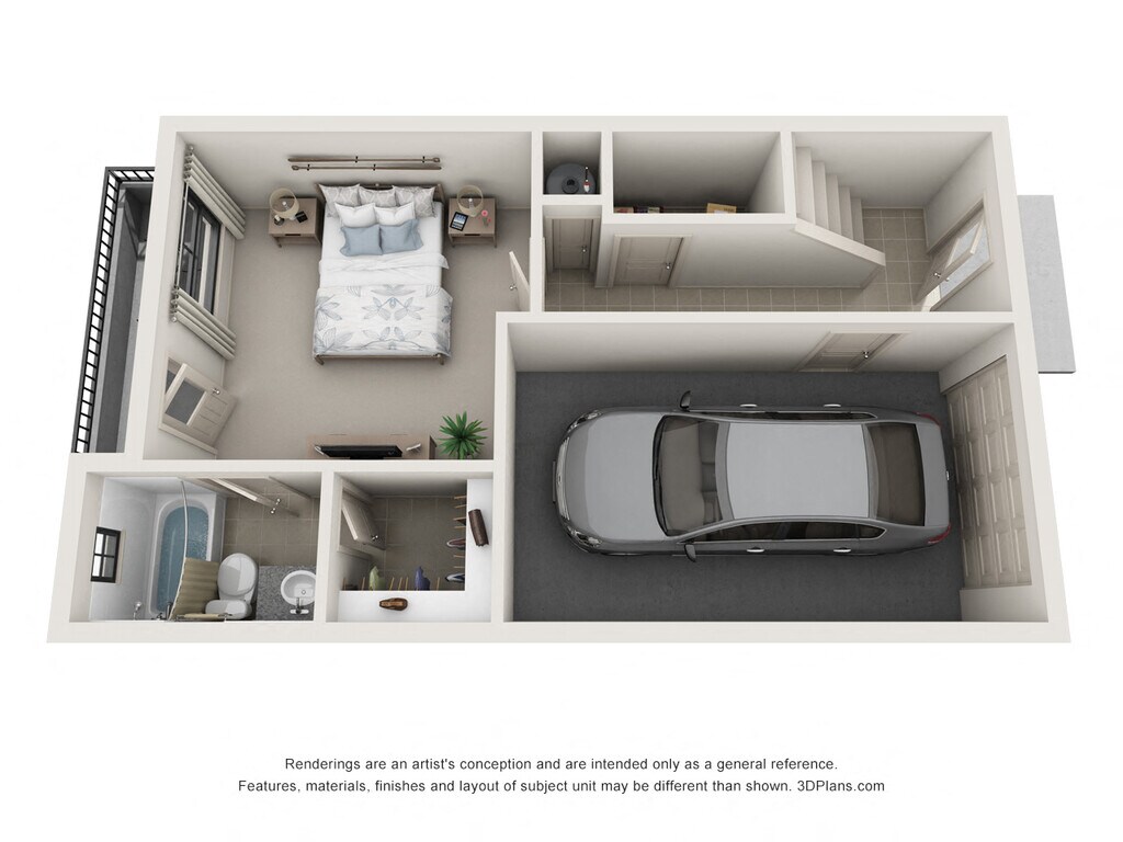 1 Bedroom, 1 Bath A (1 Car Garage) - Floorplan 2 ![]()