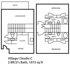 2 Beds, 2.5 Baths, 1073 sq ftModel Gallery