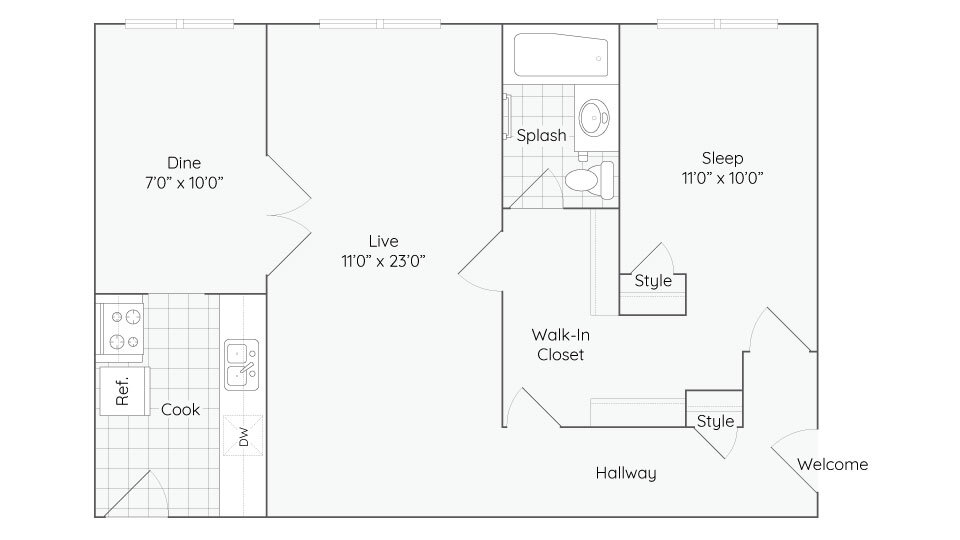 Studio, 1 Bath, 650 sq ftAvailable NowModel Gallery