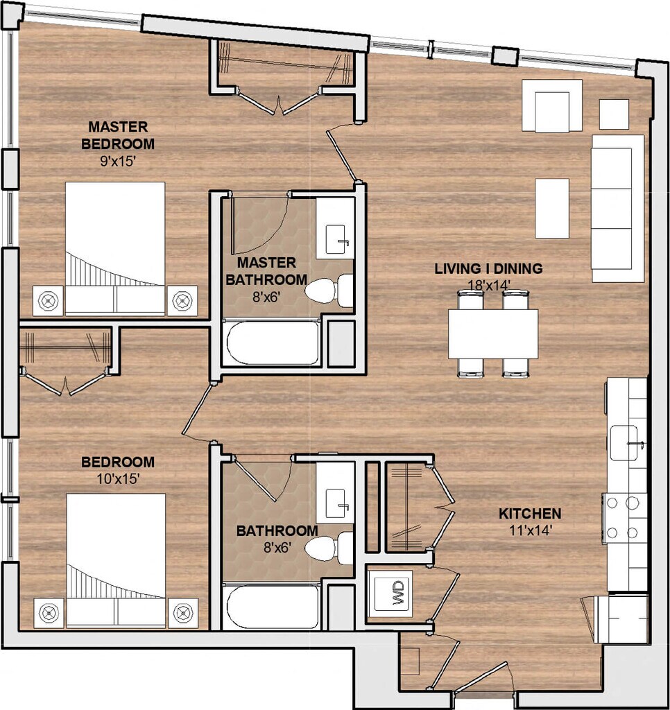 201 29 - Floorplan 1 Apartment Unit: 201-505Apartment Model: 201 29$2,699Studio, 1 Bath, 505 sq ftAvailable Now201 12