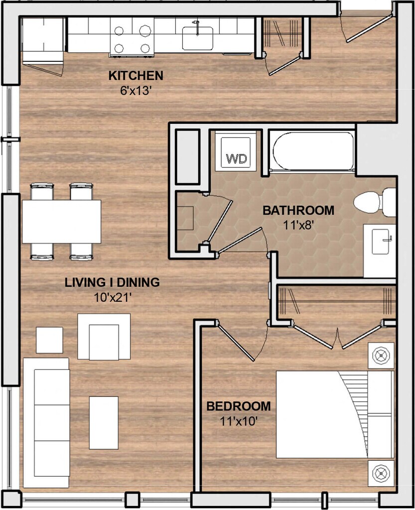 221 H - Floorplan 1 Apartment Unit: 221-205Apartment Model: 221 H$3,4901 Bedroom, 1 Bath, 594 sq ftAvailable Now201 26