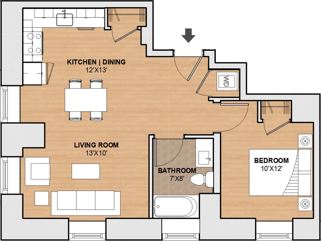 201 12 - Floorplan 1 Apartment Unit: 201-311Apartment Model: 201 12$2,789Studio, 1 Bath, 536 sq ftAvailable Now1 Bedroom