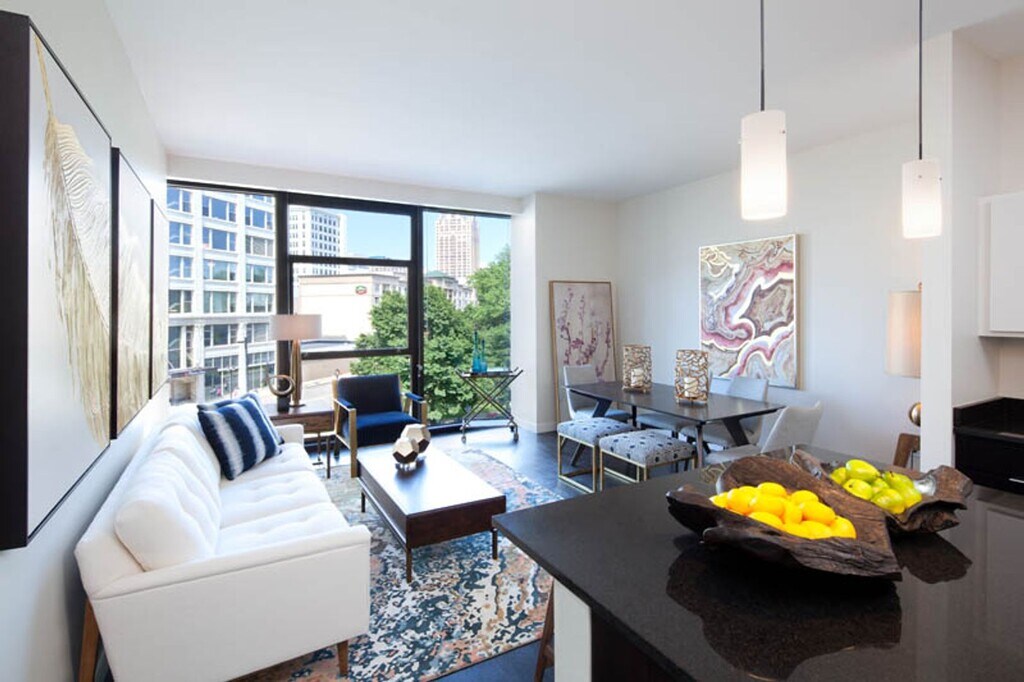 The Buckler offers a wide variety of apartment layouts geared towards an elevated living experience in downtown Milwaukee. Enjoy the high-end finishes, top-of-the-line appliances, and spacious floor plans, creating the perfect combination of comfort and style. Try out our unique, curated amenities such as the basketball court, WIFI lounge, fitness center, and outdoor terrace that raise the bar on city living. The Buckler's Westown location is ideal for those looking to explore the city's vibrancy, with access to MKE Public Market, Fiserv Forum, and bustling downtown, residents enjoy an endless array of convenience, dining, and entertainment options. Take advantage of the best Milwaukee has to offer and enhance your every day at The Buckler.