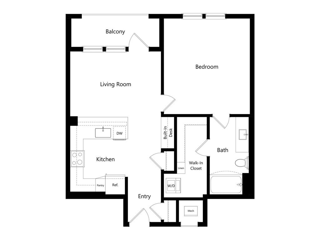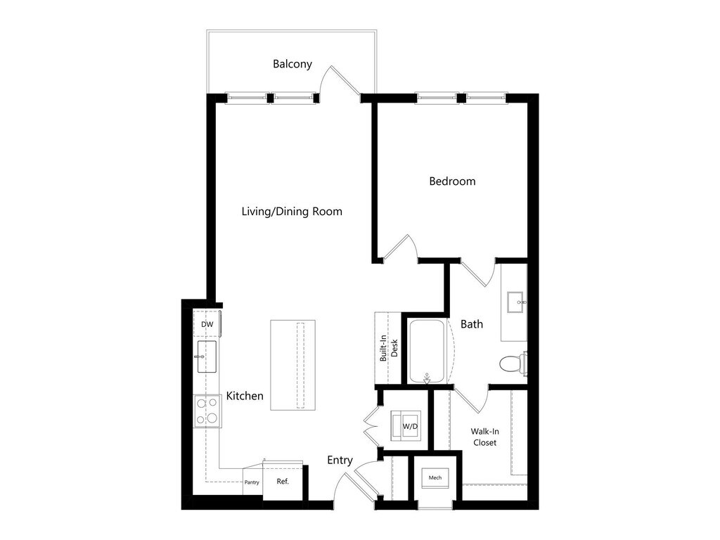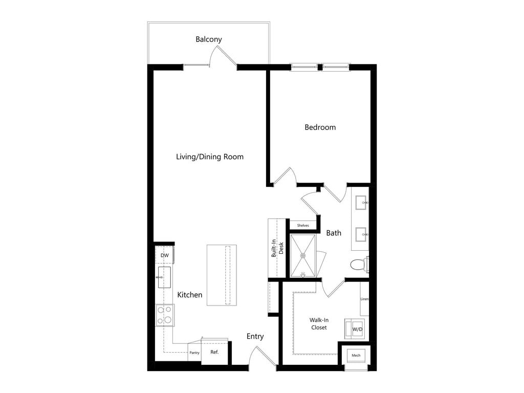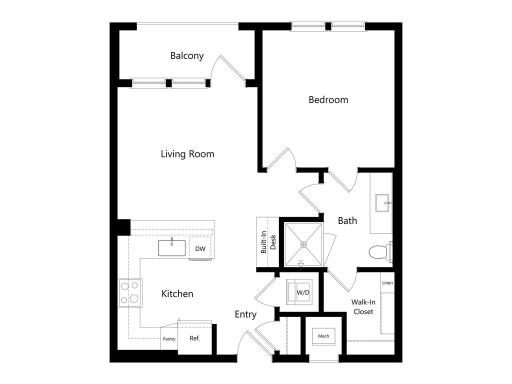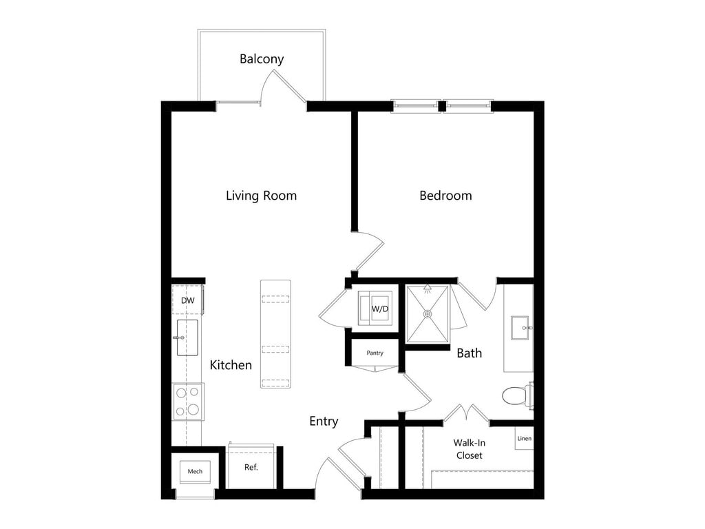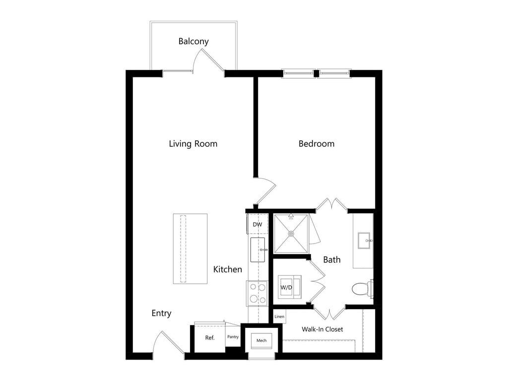 Apartment Model: A3From $2,1601 Bedroom, 1 Bath, 672 sq ftAvailable June 10, 2026Floor plans are artist's rendering. All dimensions are approximate. Actual product and specifications may vary in dimension or detail. Not all features are available in every rental home. Please see a representative for details.