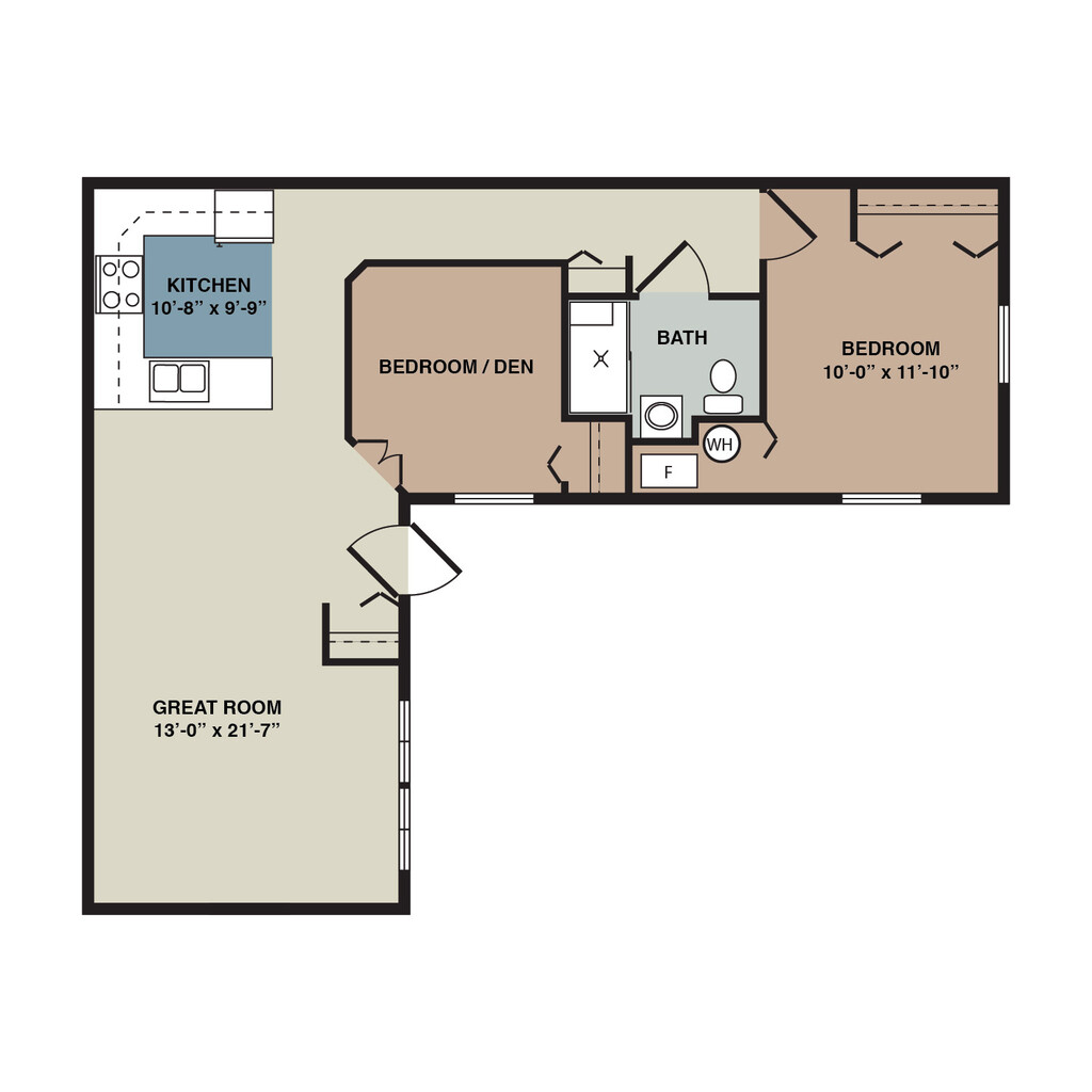 2 Beds, 1 Bath, 816 sq ftPlus FeesAvailable NowModel Gallery