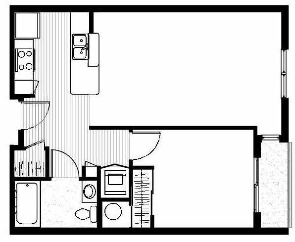 Studio - Floorplan 1 Floor plans are artist's rendering. All dimensions are approximate. Actual product and specifications may vary in dimension or detail. Not all features are available in every rental home. Prices and availability are subject to change. Base rent is based on monthly frequency. Additional fees may apply, such as but not limited to package delivery, trash, water, amenities, etc. Deposits vary. Please see a representative for details.