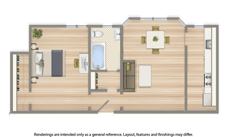 1 Bed, 1 Bath, 729 sq ftModel Gallery