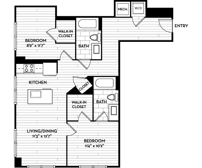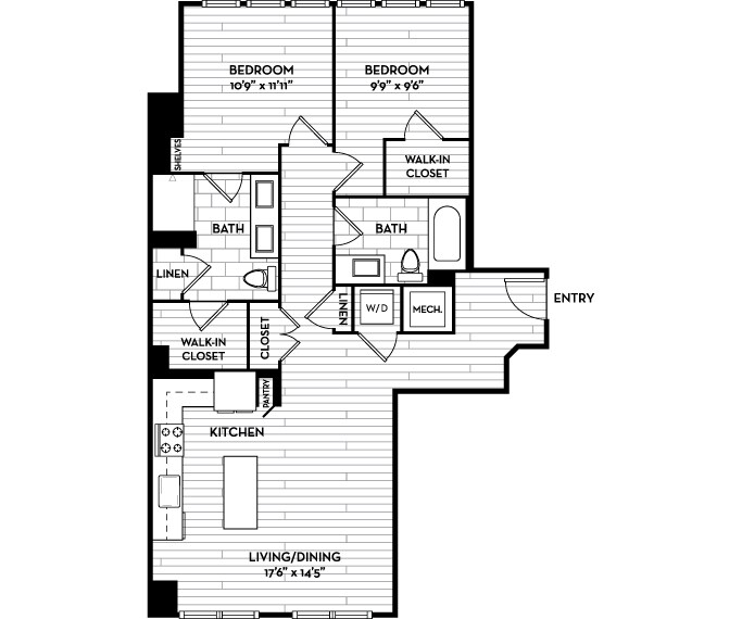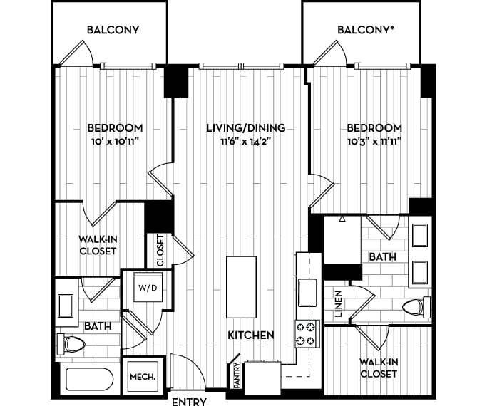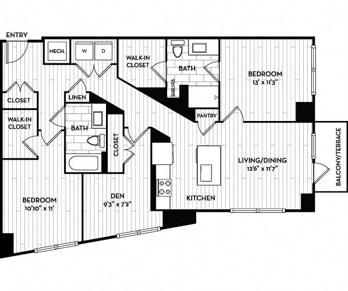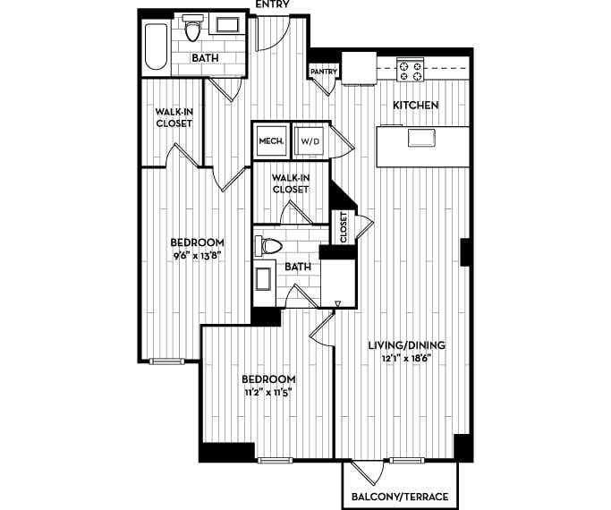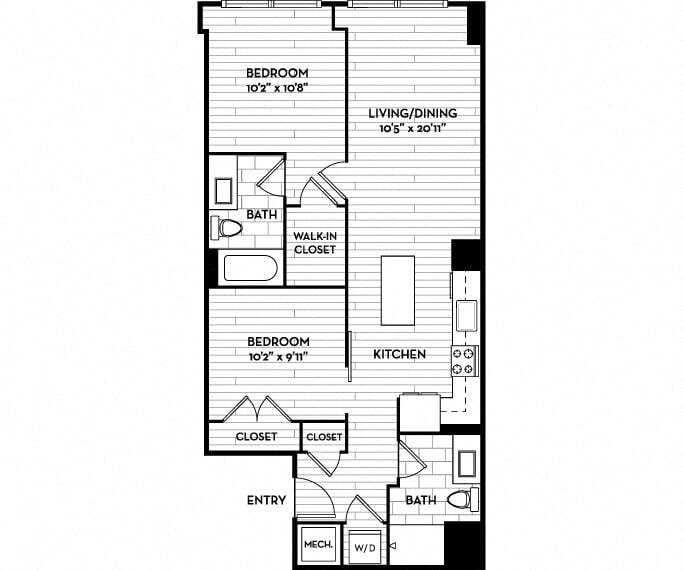 Apartment Model: 11F2From $2,3701 Bedroom, 1 Bath, 640-737 sq ftAvailable Now![]()