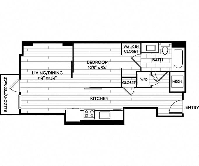 Studio, 1 Bath, 623-642 sq ftAvailable NowModel Gallery