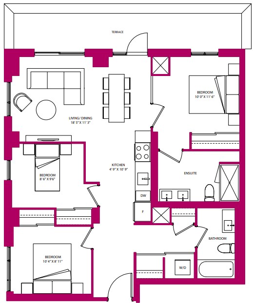 3 Beds, 2 Baths, 1005-1121 sq ftAvailable NowAvailability Details