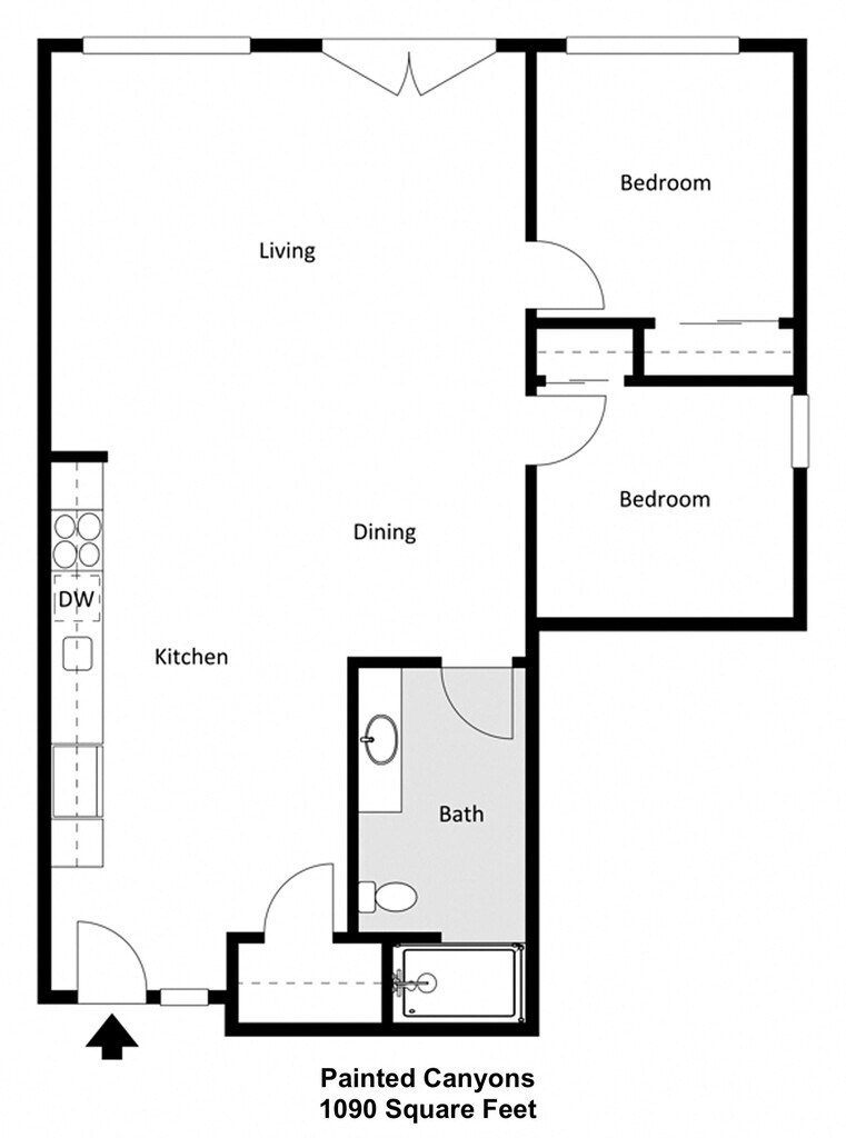 Elwha River - Floorplan 1 Apartment Unit: 501Apartment Model: Elwha River$2,5442 Bedroom, 1 Bath, 984 sq ftAvailable NowPainted Canyon