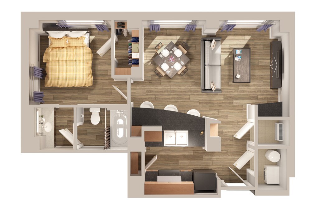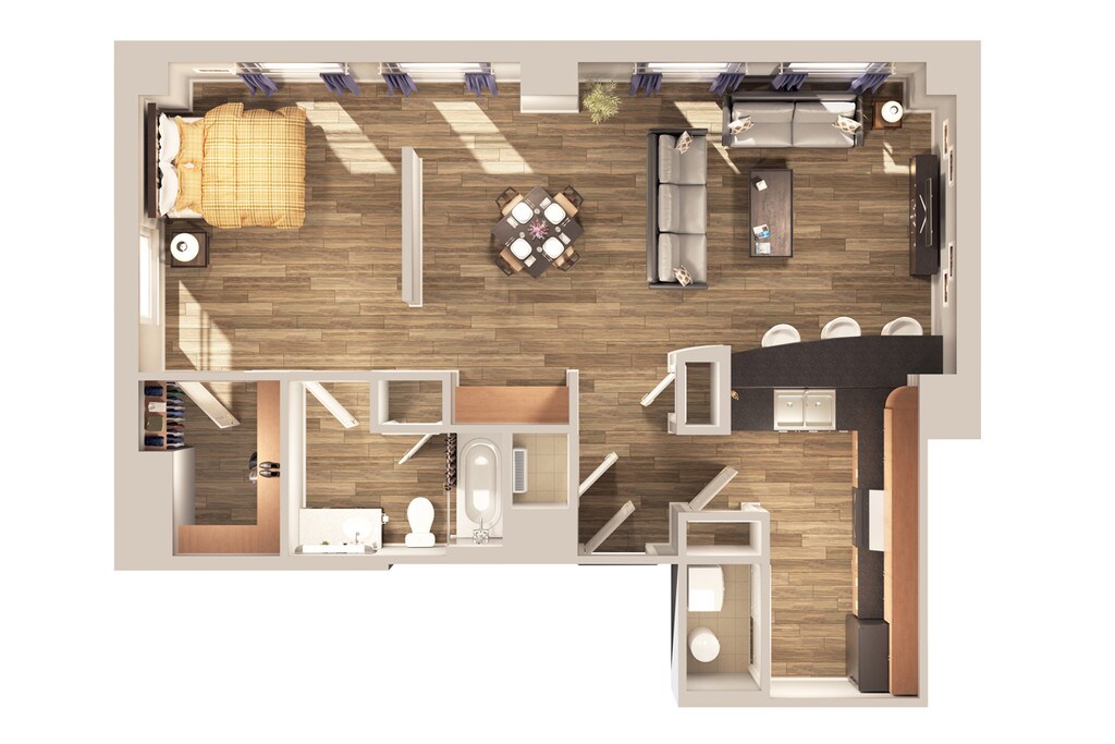 1 Bed, 1 Bath, 677 sq ftModel Gallery