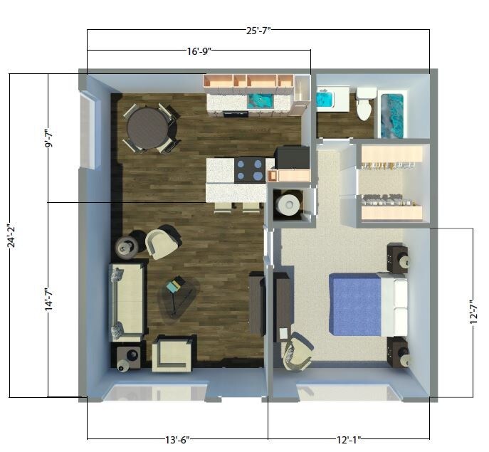 1 Bed, 1 Bath, 625 sq ftModel Gallery