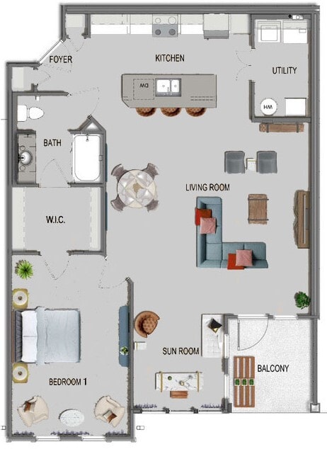 1 Bed, 1 Bath, 1128 sq ftAvailable NowLargest 1 BedroomThis is the largest 1 Bedroom at this PropertyModel Gallery