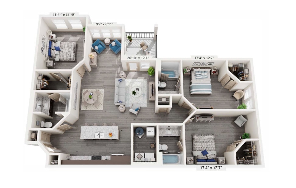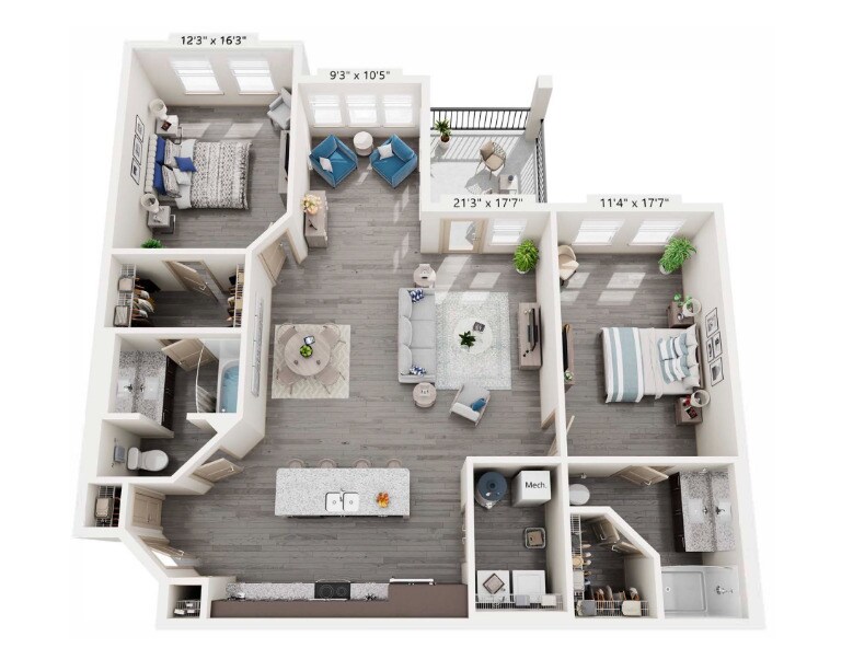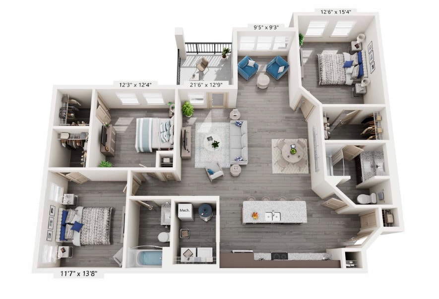 Apartment Model: KensingtonFrom $2,1333 Bedroom, 3 Bath, 1587 sq ftAvailable Now![]()