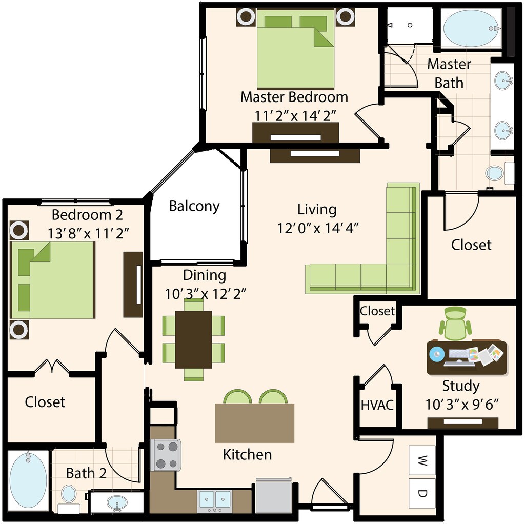 1 Bed, 1 Bath, 755 sq ftAvailable NowModel Gallery