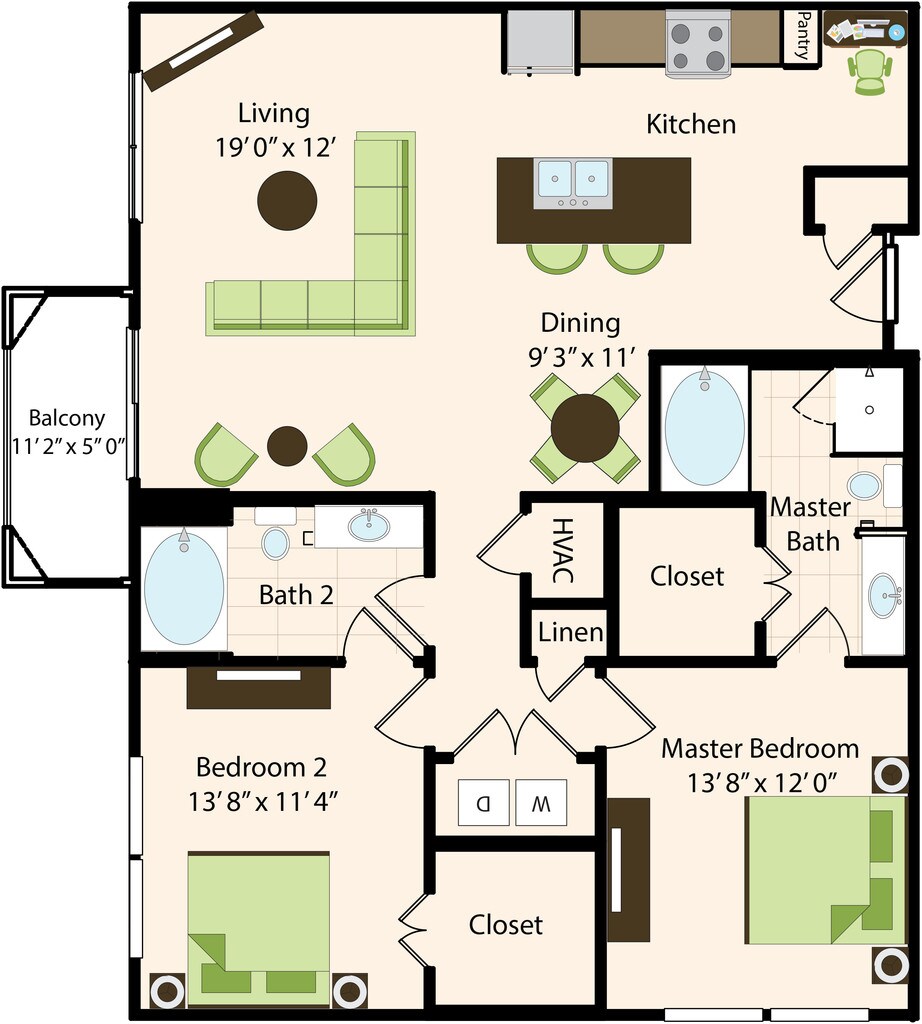 Apartment Model: A2.1From $1,4631 Bedroom, 1 Bath, 755 sq ftAvailable NowFloor plans are artist's rendering. All dimensions are approximate. Actual product and specifications may vary in dimension or detail. Not all features are available in every rental home. Prices and availability are subject to change. Base rent is based on monthly frequency. Additional fees may apply, such as but not limited to package delivery, trash, water, amenities, etc. Deposits vary. Please see a representative for details.
