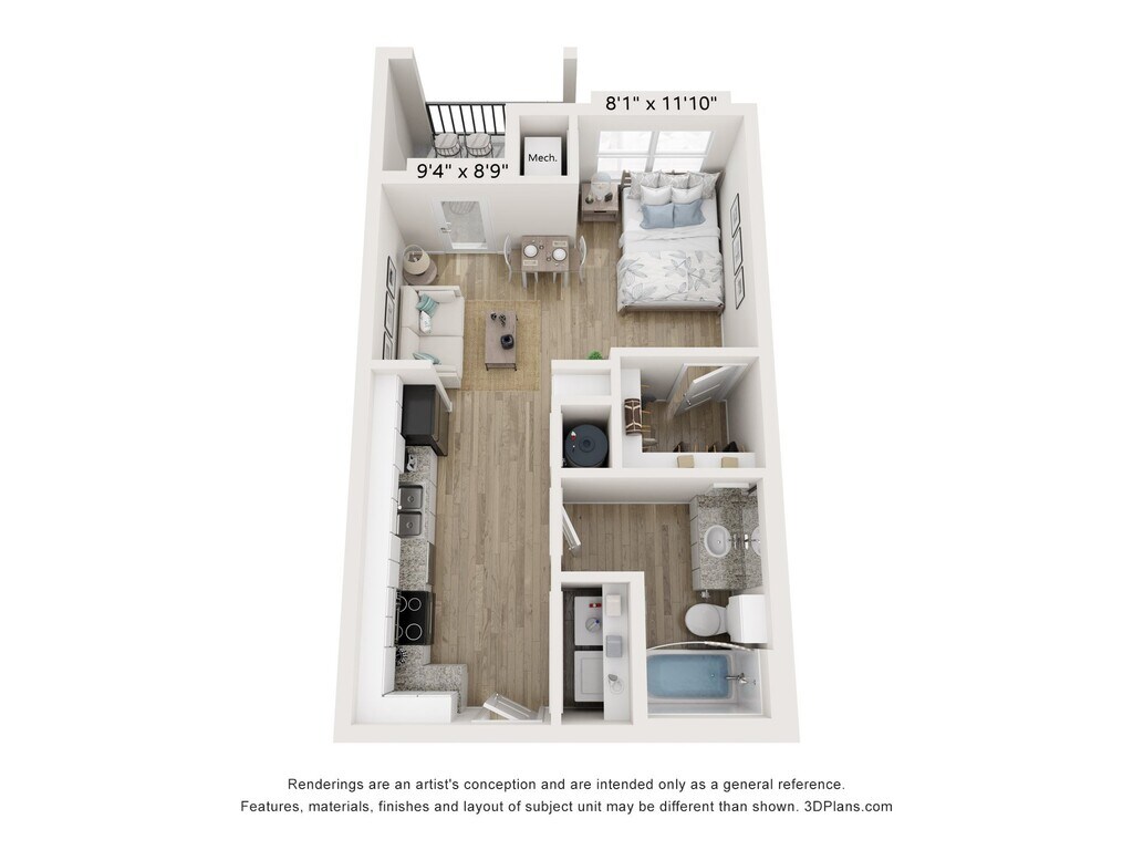 Studio, 1 Bath, 494 sq ftAvailable NowModel Gallery