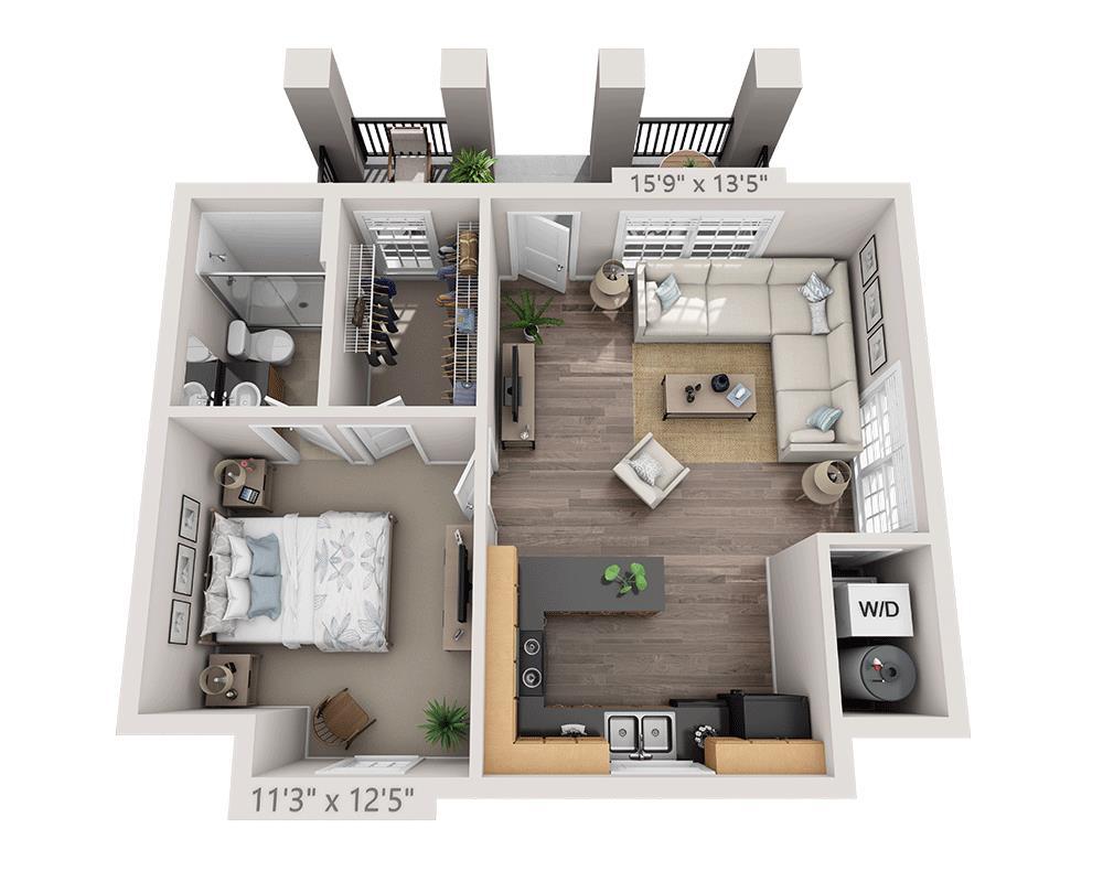 Apartment Model: One Bedroom A1CCall For RatesStudio, 1 Bath, 618 sq ftUnavailableOne Bedroom A1C - Floorplan 1 1 Bedroom